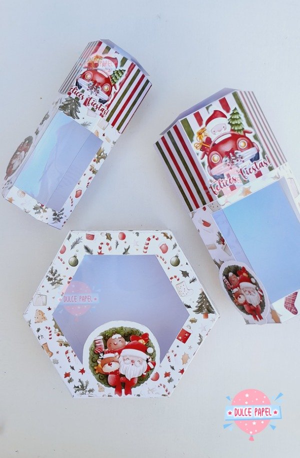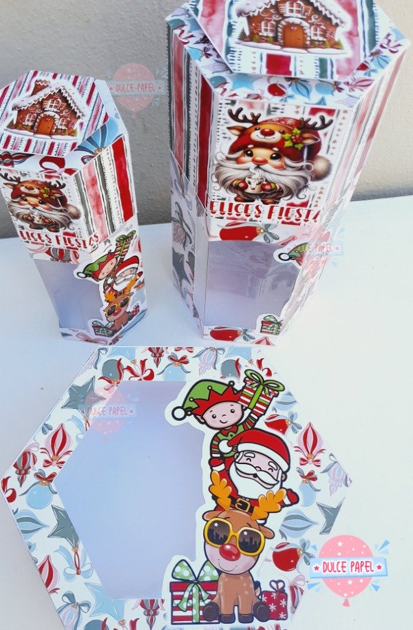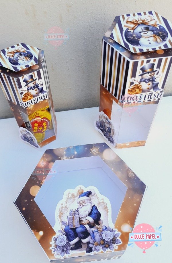 ⭐ Caja Hexagonal Grande, mide 17,5 cms de Alto x 9 cms de ancho. Usa dos hojas A4.